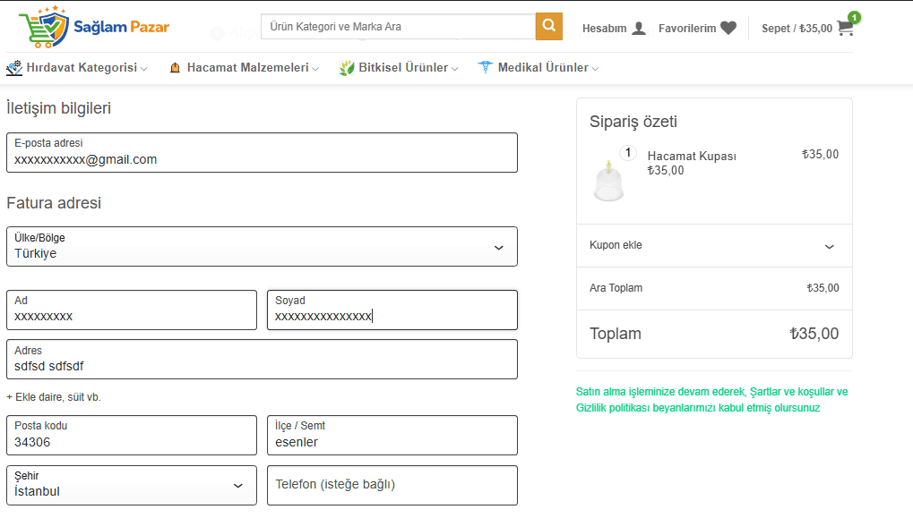 E-posta, adres ve teslimat bilgilerinizi eksiksiz doldurun.