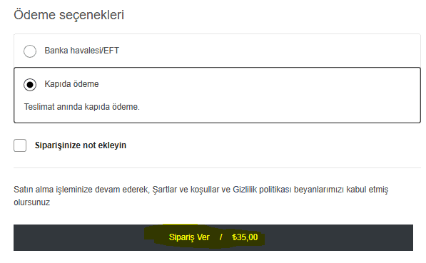 Sipariş Ver butonuna tıklayarak alışverişinizi tamamlayın.